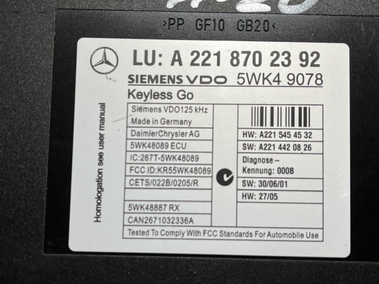 Блок управления центральным замком Mercedes-Benz S-Класс W221 2008